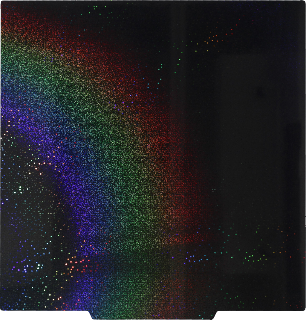Il PET/PEI Build Plate - Magic di 3DJAKE è un pannello da costruzione flessibile, rivestito su entrambi i lati con una base magnetica. Un lato del piano di costruzione è realizzato in materiale PET con un motivo arcobaleno scintillante, che conferisce agli oggetti stampati effetti visivi unici. L'altro lato ha un rivestimento PEI verniciato a polvere per un'eccellente adesione e un facile rilascio dei modelli.