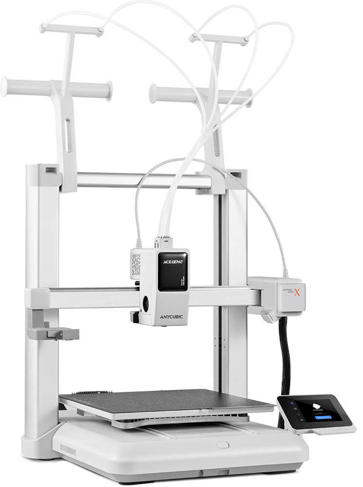 Dotata della tecnologia ACE GEN 2, Kobra X consente la stampa a 4 colori direttamente nel toolhead ed è espandibile fino a 19 colori*. Allo stesso tempo il sistema supporta la stampa multi-materiale come PLA, TPU o PVA, permettendo di realizzare anche progetti complessi in modo efficiente.