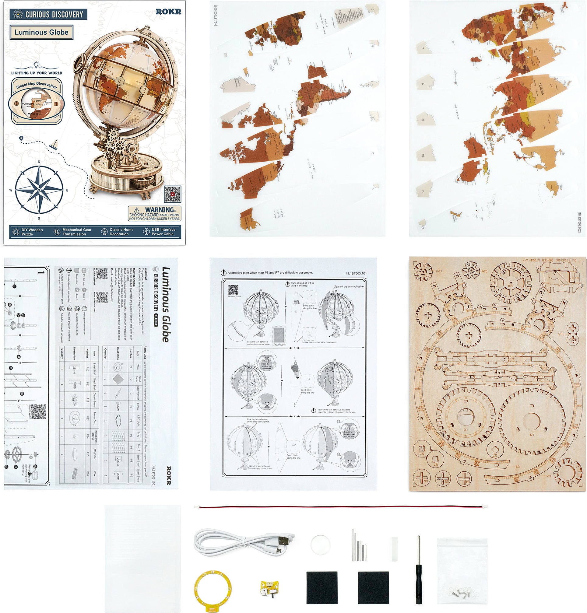 A volte basta un solo sguardo per sentire il desiderio di partire. Il ROKR Luminous Globe è un globo girevole in legno che non mostra soltanto Paesi, ma racconta storie. Durante il montaggio prende forma passo dopo passo un piccolo mondo, sostenuto da ingranaggi, circondato da incisioni e attraversato da una luce delicata. Una volta completato, inizia la sua silenziosa magia: ruota, si illumina dall'interno e invita a osservare i luoghi con occhi nuovi, senza schermo, al tuo ritmo.